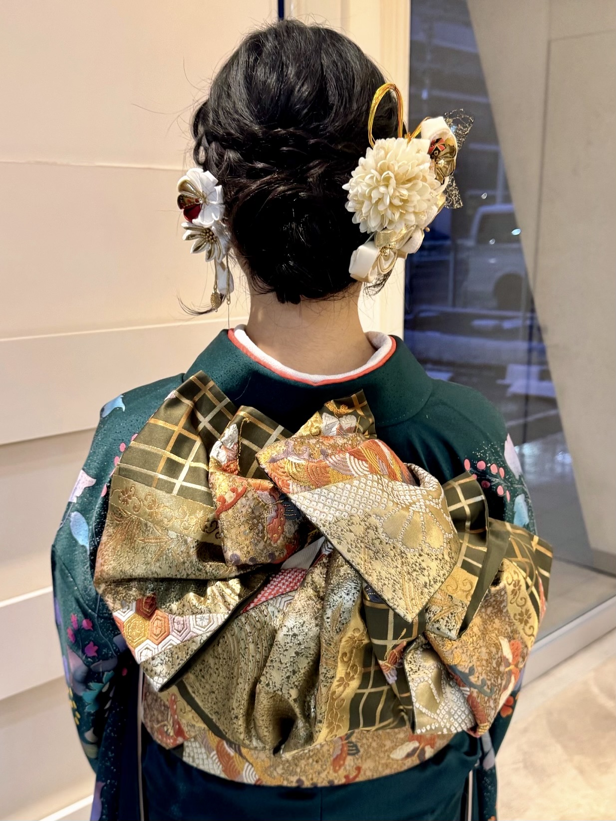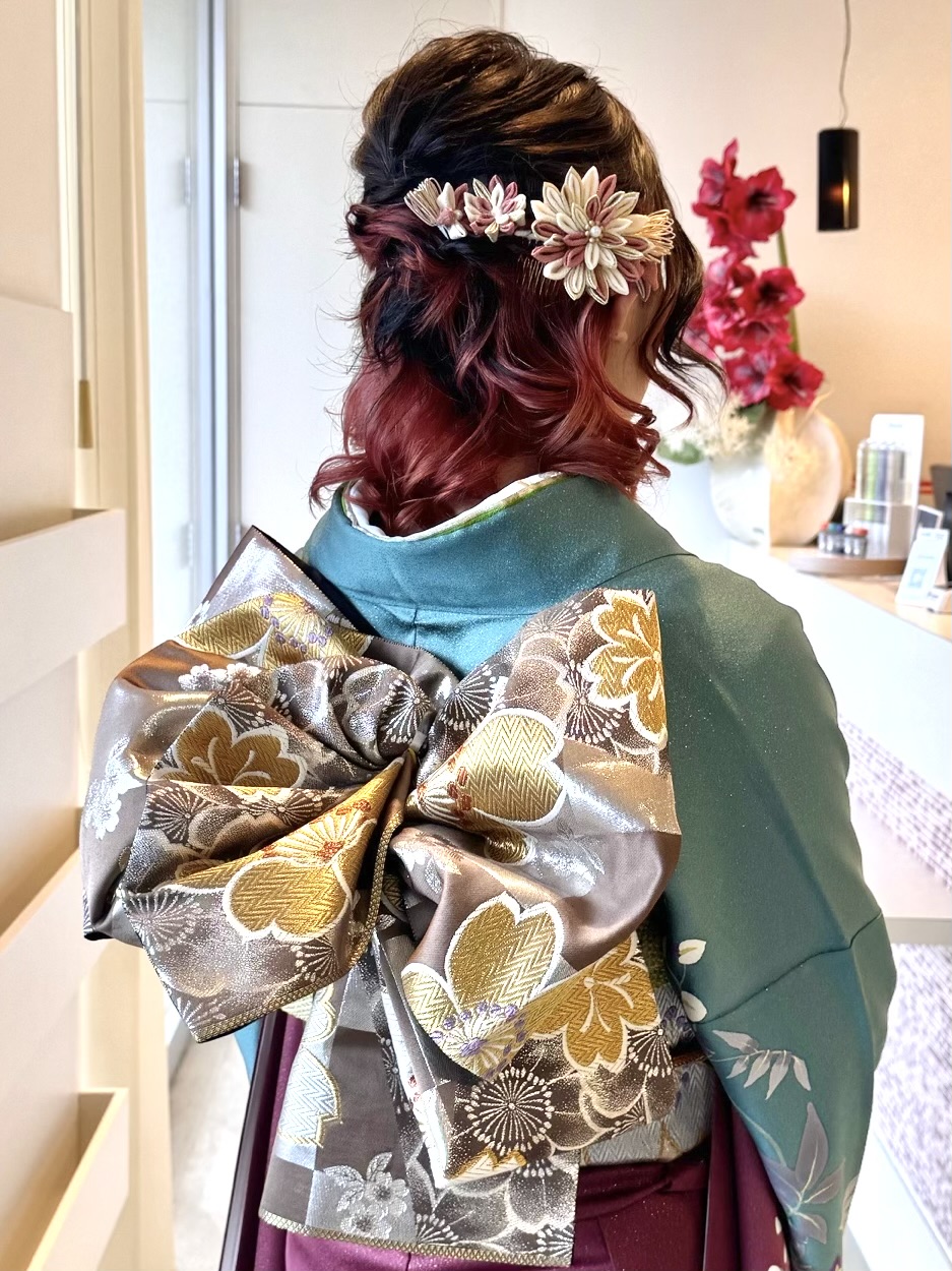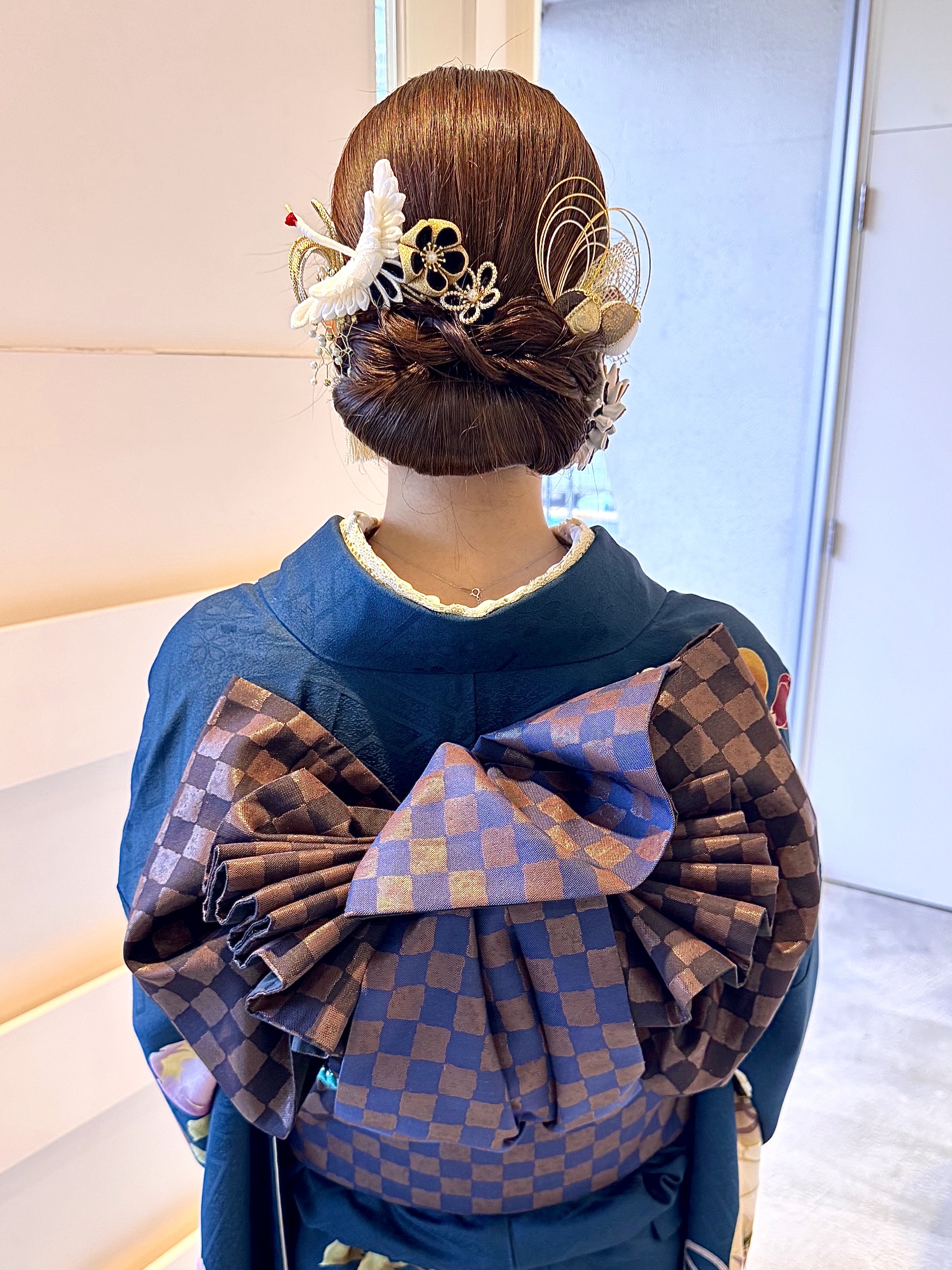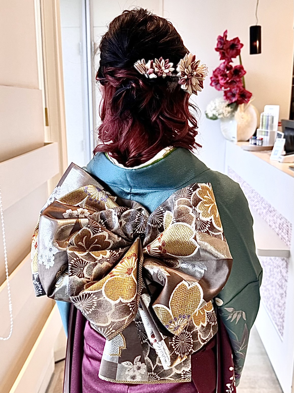 帯結びとヘアスタイルのお写真をご掲載させていただきました。