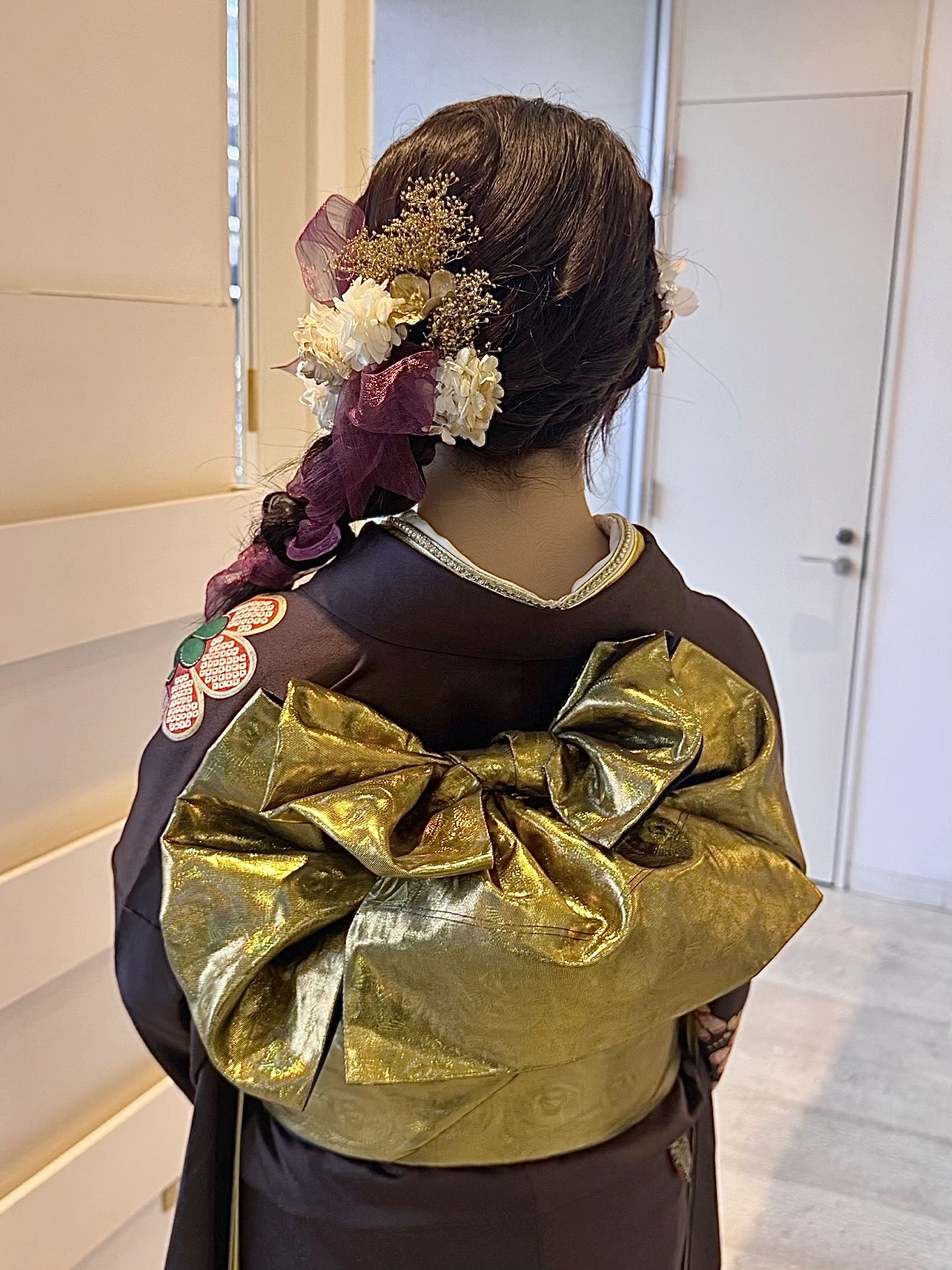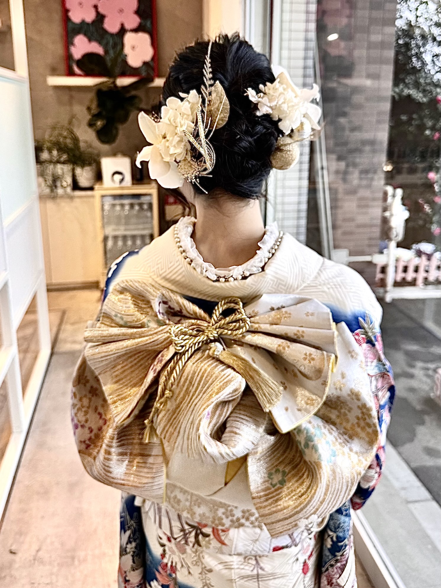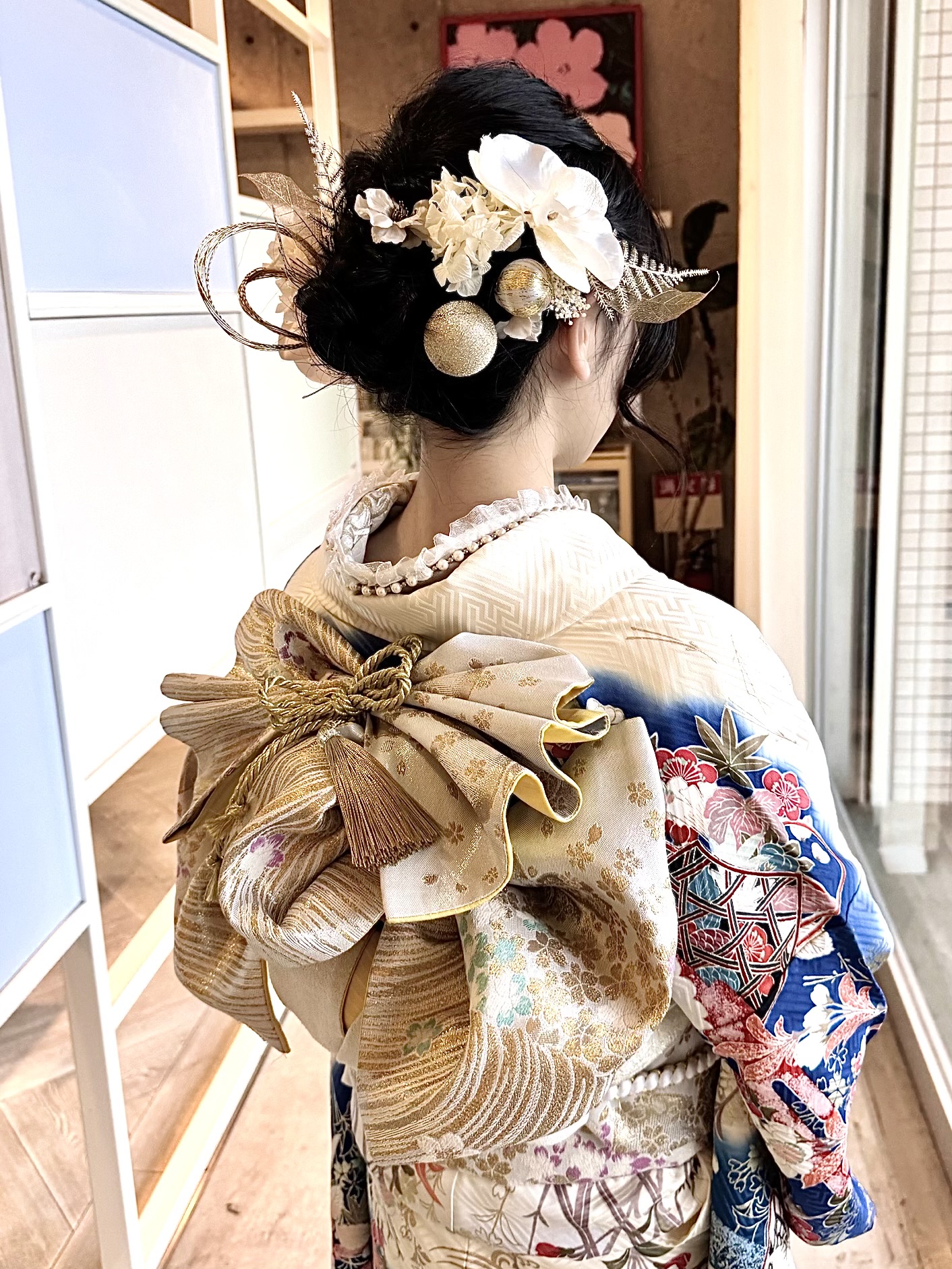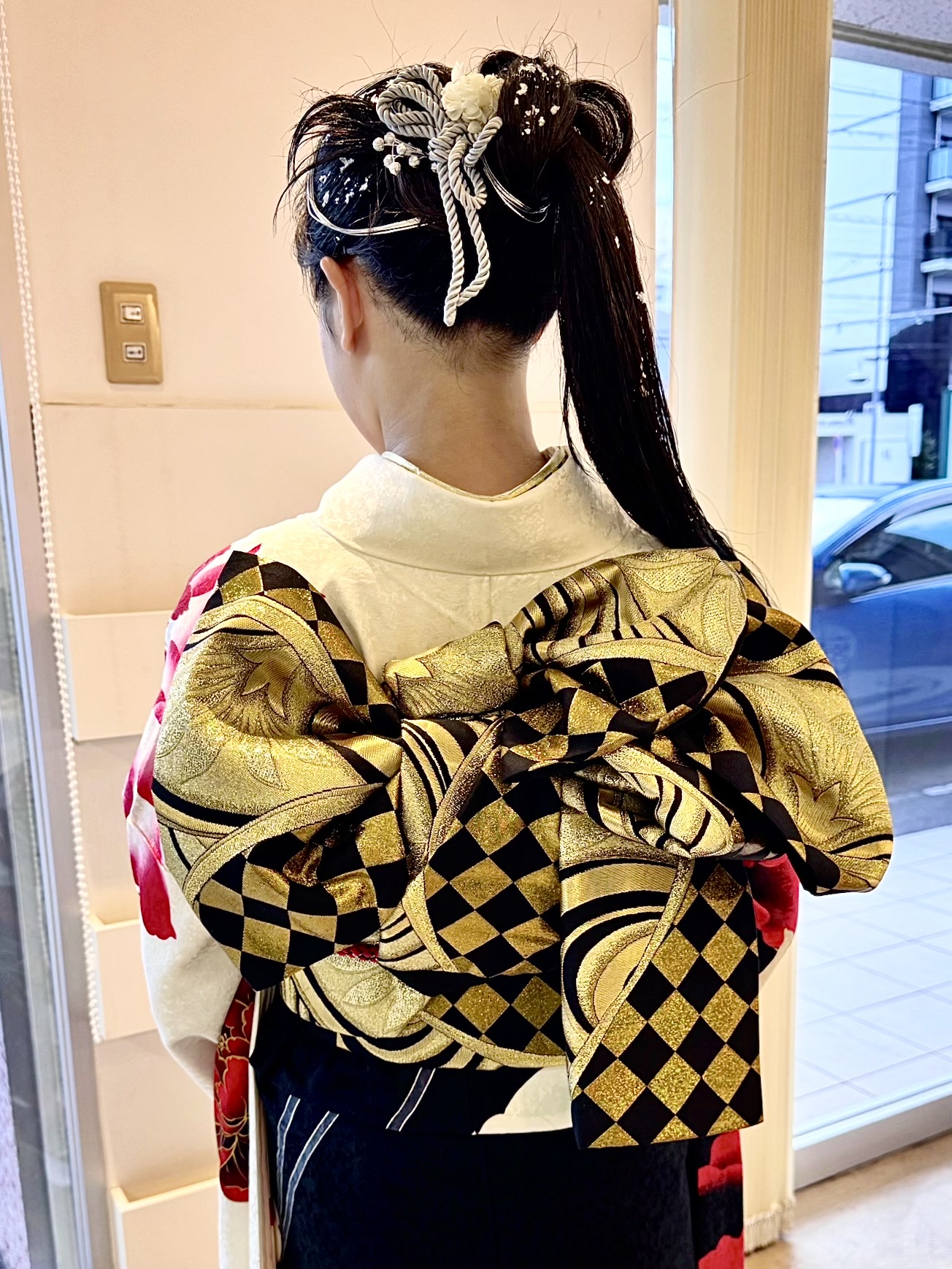 帯結びとヘアスタイルのお写真をご掲載させていただきました。