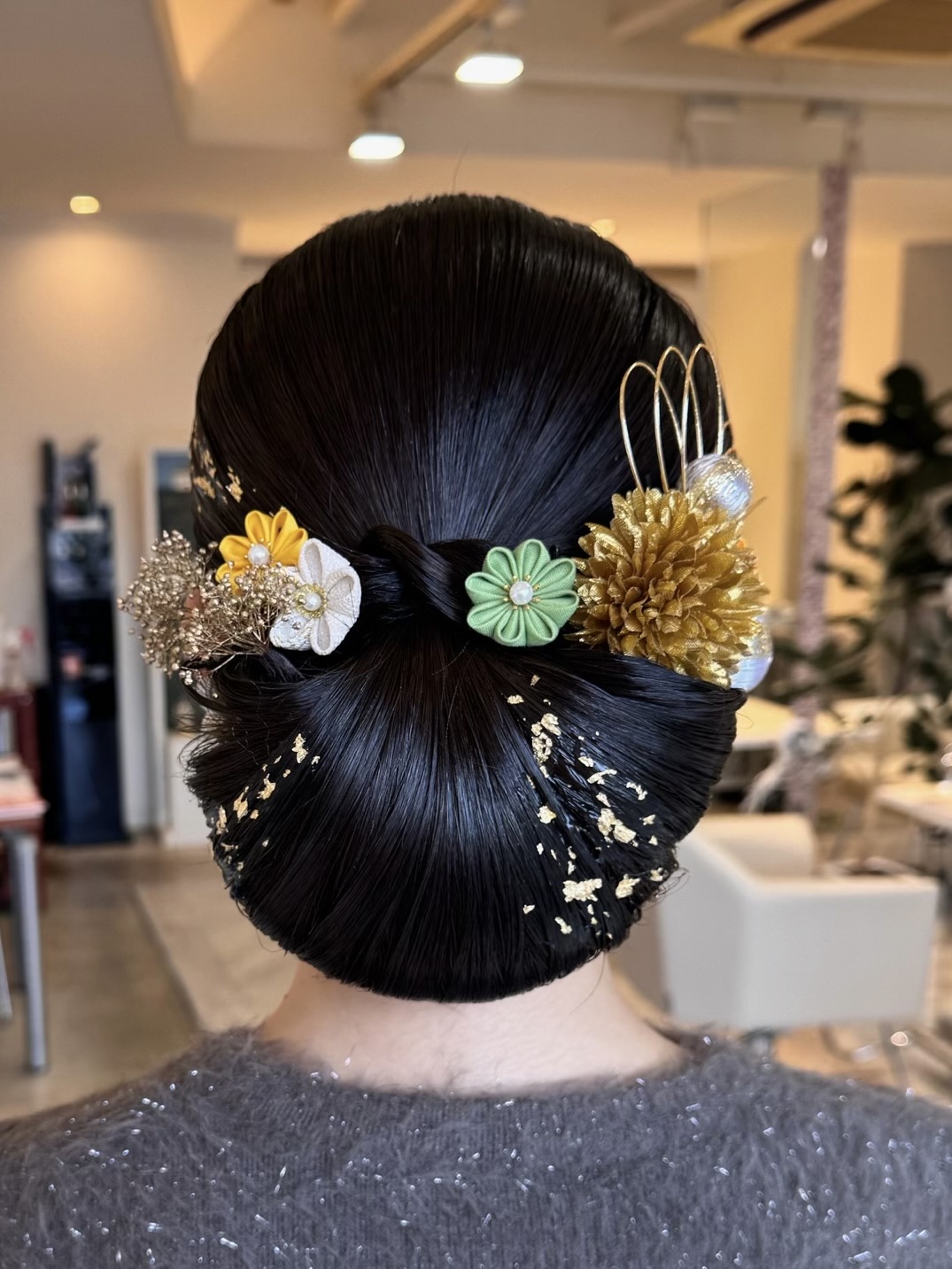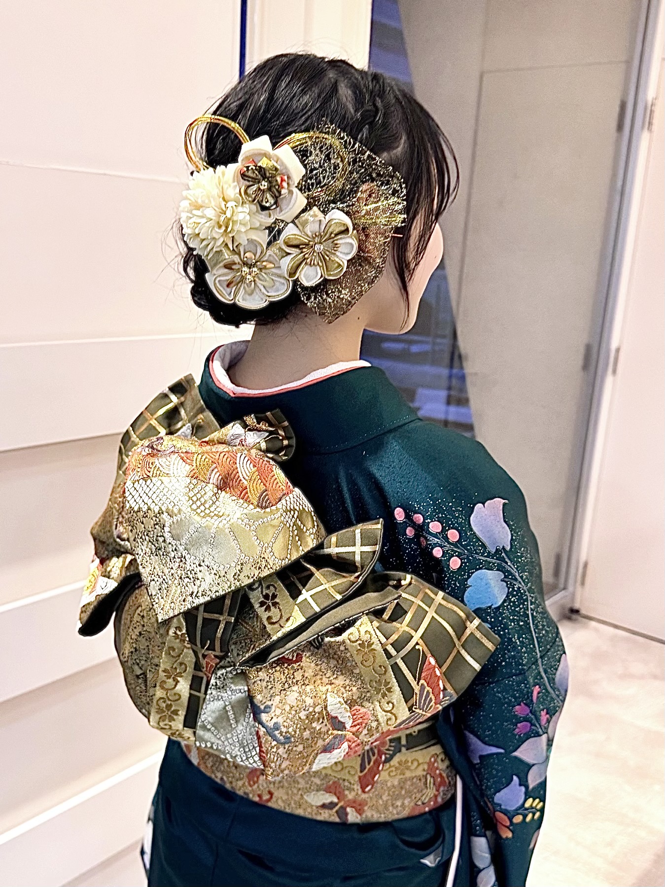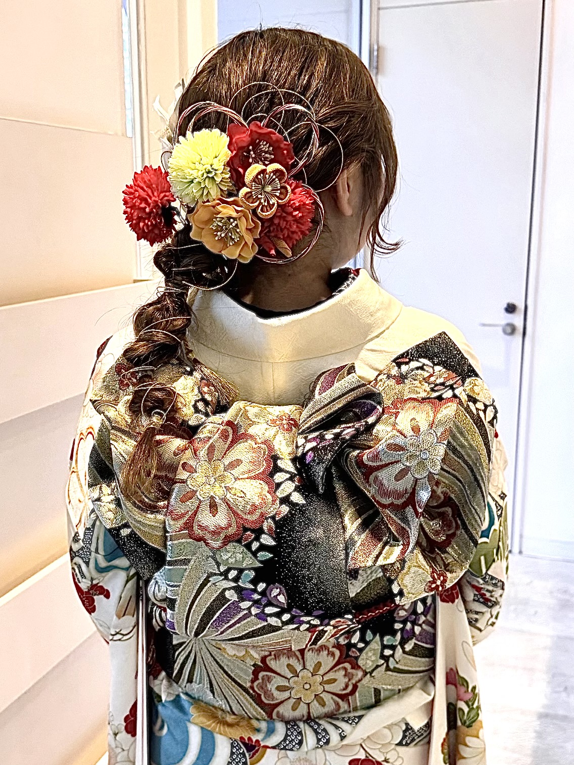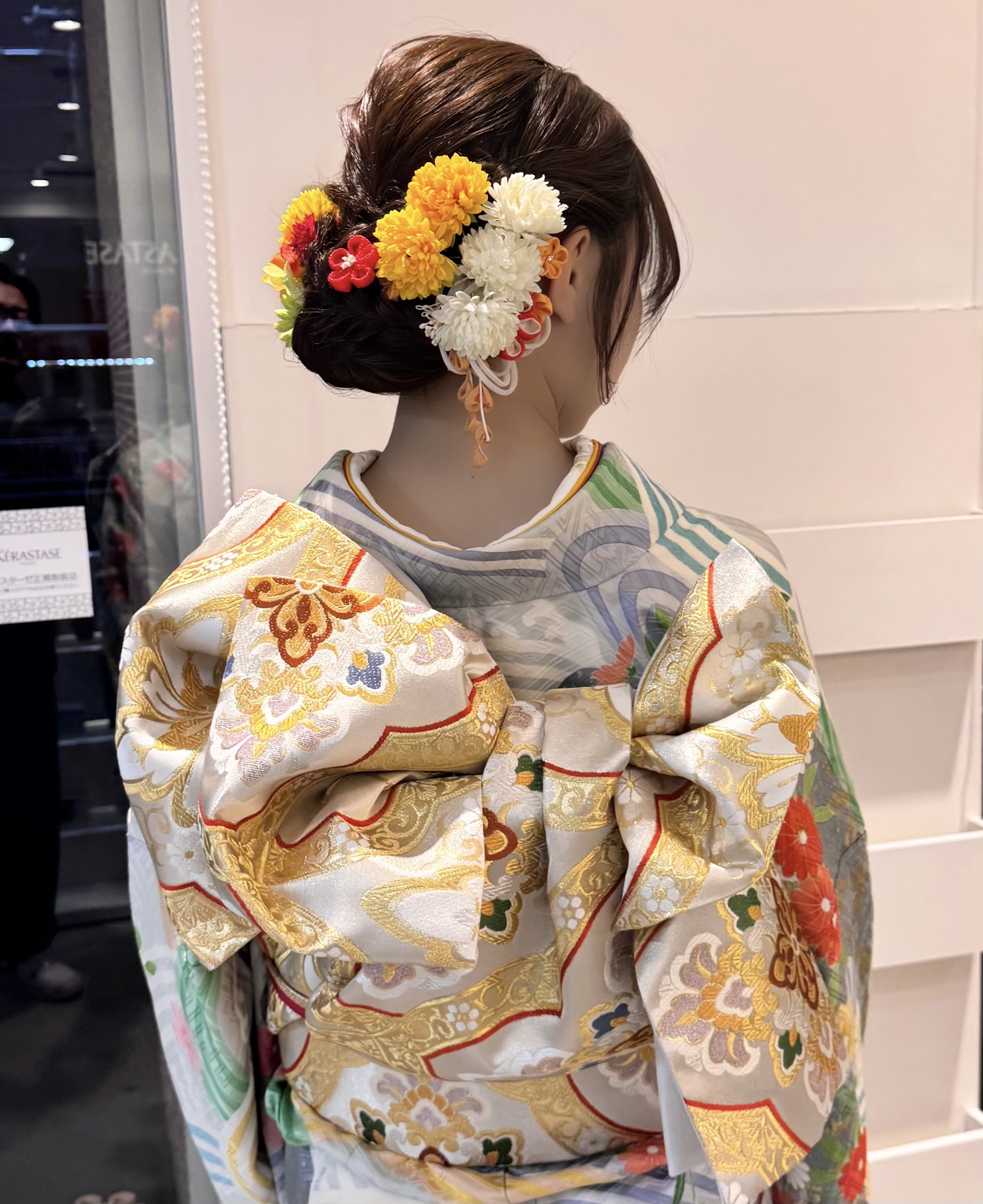 帯結びとヘアスタイルのお写真をご掲載させていただきました。